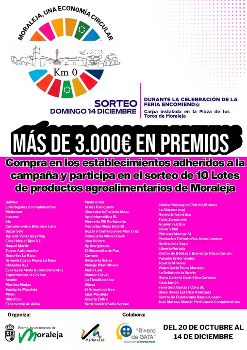 Por cada compra o servicio superior a 15 โฌ en los establecimientos adheridos, recibirรกs una papeleta para participar en el sorteo de 10 lotes con productos agroalimentarios de Moraleja, valorados en mรกs de 3.000 โฌ ๐ฏ๐ฅ๐ฅฉ๐ถ